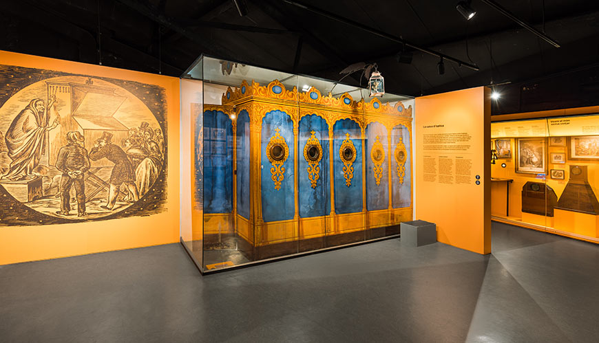 In the seventeenth and eighteenth centuries, tools were acquired so that the hand of man could copy the images captured by the camera obscura. At the same time, optical boxes, or Mondo Nuovo, allowed observers to get to know faraway cities and places, without leaving home, via these images seen through the viewing hole.